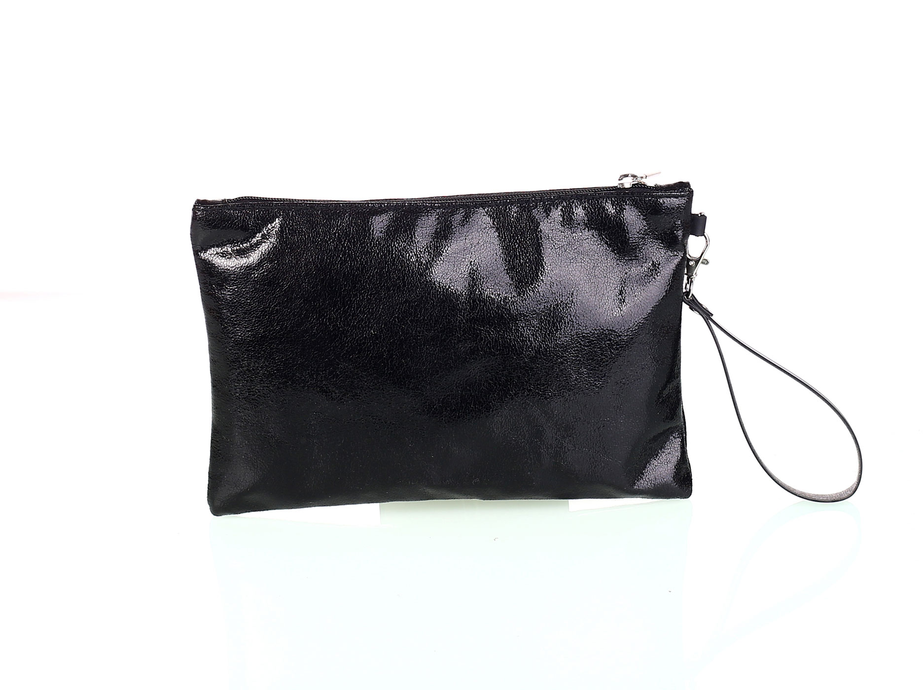 Dámska listová kabelka Kbas čiernej farby vyniká elegantným vzhľadom a metalickým odleskom. Táto kabelka je štýlová a luxusná, stačí si ju vziať do ruky a môžete vyraziť. Malé čierne ramienko poslúži dámam pri tom, aby mali svoju kabelku vždy pri sebe a ak budú potrebovať voľné ruky, kabelku si jednoducho prevesia cez zápästie. Listová kabelka je vyrobená z eko kože. Kabelka je strednej veľkosti a je praktická, takže sa do nej zmestí všetko, čo potrebujete.